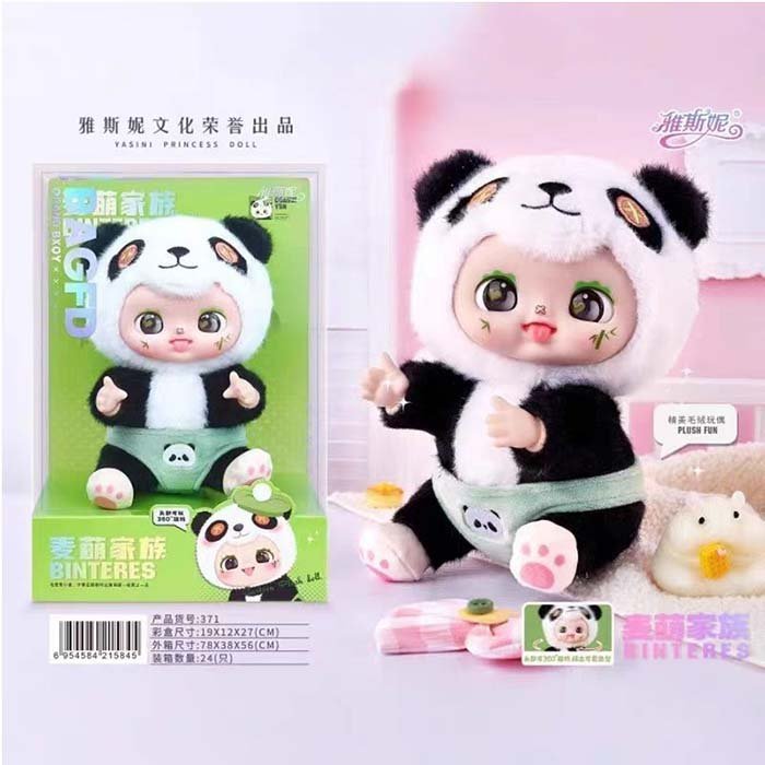 BAGFD stuffed doll in a panda costume with big eyes